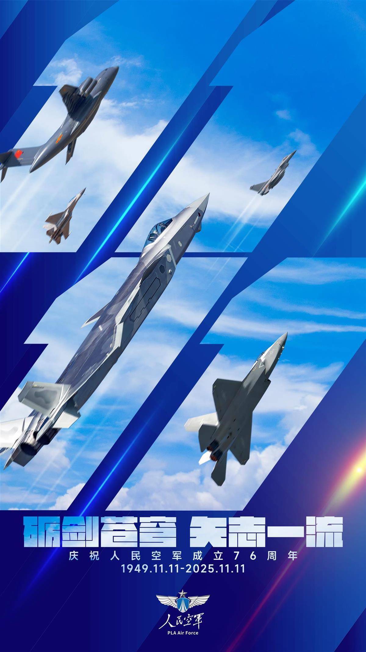 76载,无畏守护,逐梦翱翔;76载,凌云利剑,制胜空天。今天,11月11日,是人民空军成立76周年。