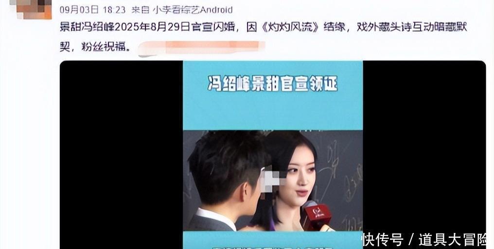 乌龙闪婚闹剧2025年9月,娱乐圈被一场突如其来的“闪婚传闻”搅得沸沸扬扬。刚合作完古装剧《灼灼风流》的冯绍峰与景甜,被匿名账号爆料“8月29日秘密领证”。剧中甜翻观众的“战神CP”戏外成真的消息,瞬间让相关话题冲上热搜榜首。